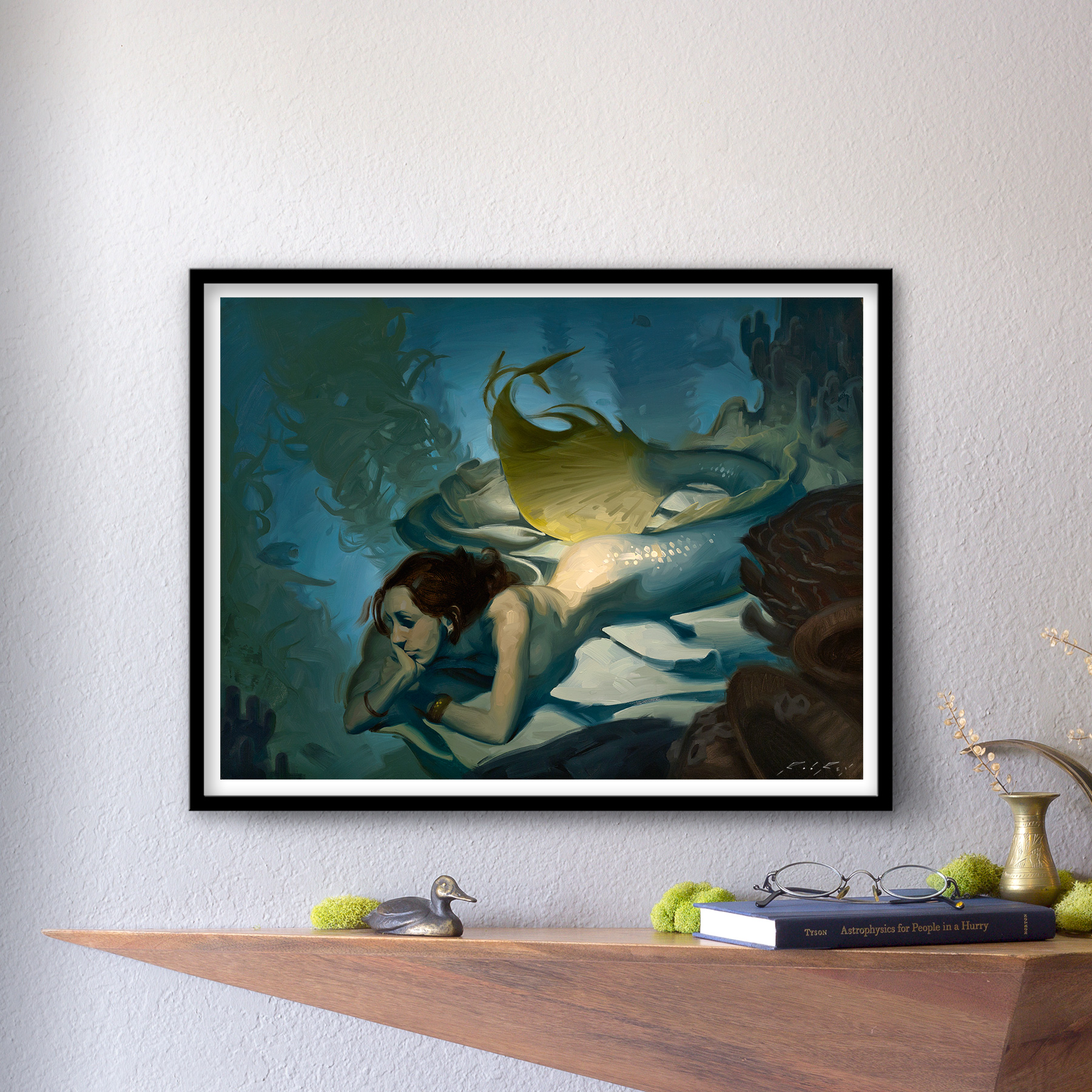 Bored or lost in thought, this mermaid is taking a moment for herself.